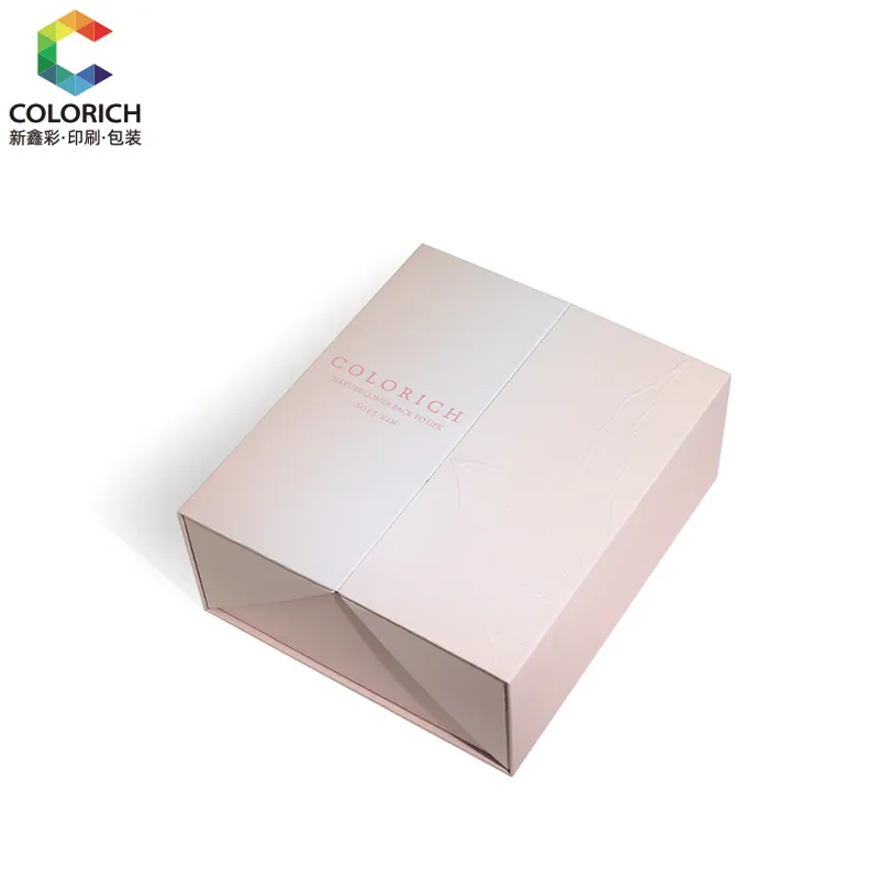 Elegant pink foldable double-door paper packaging box - this is a sophisticated and space-saving solution designed to enhance the display effect of your products