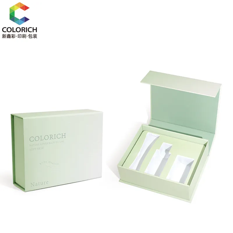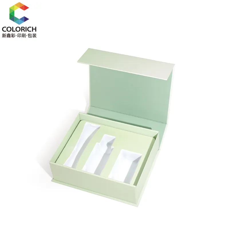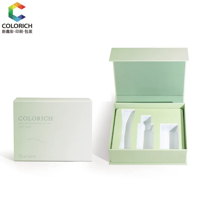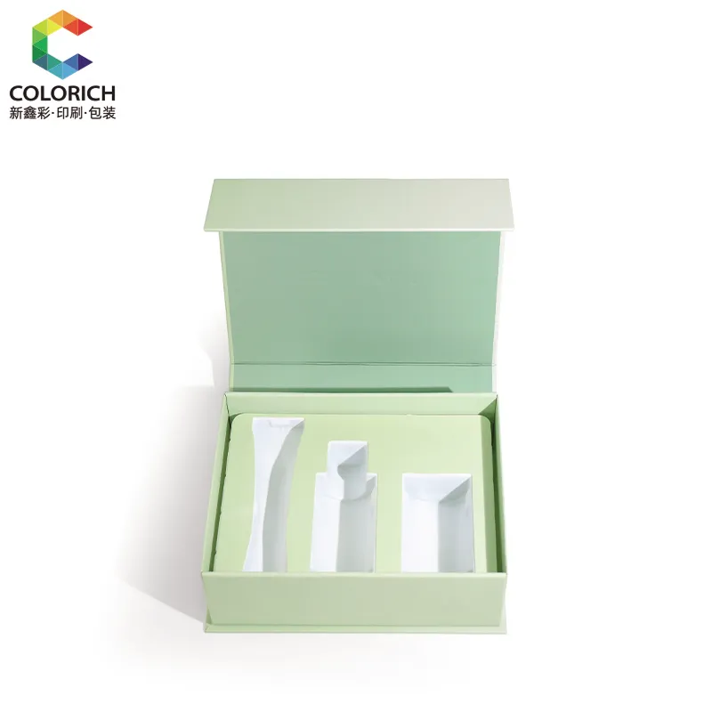 This packaging box is equipped with a flip-top lid. When opened, you can see the customized compartments - perfect for storing serums, creams or travel-sized skincare sets. The flip-top lid can be folded and flattened for shipping, significantly reducing transportation costs.