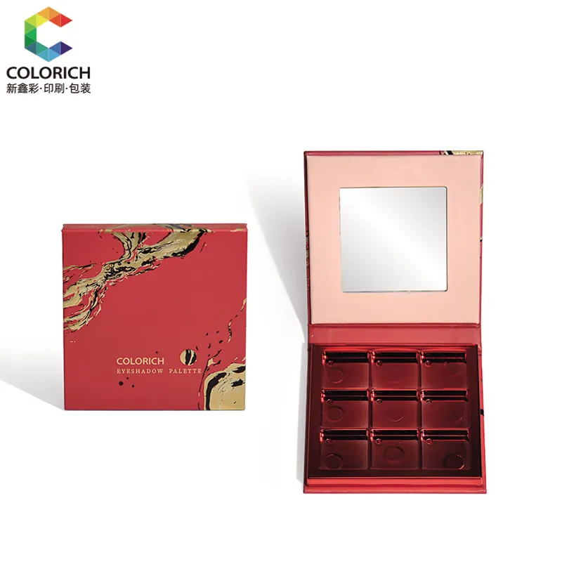 This is a fashionable packaging solution specifically designed for eyeshadow with luxurious packaging. The appearance features a deep matte red color, adorned with exquisite gold decorative patterns (adding a touch of luxury).